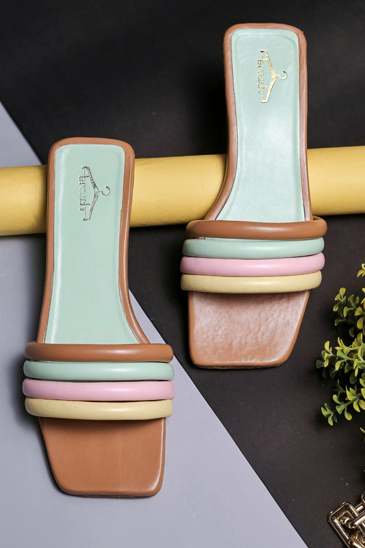 Brauch Women Tan Dual Strap Embellished Buckle Flats