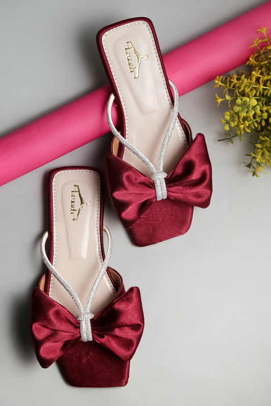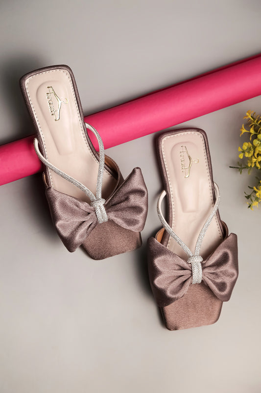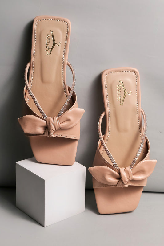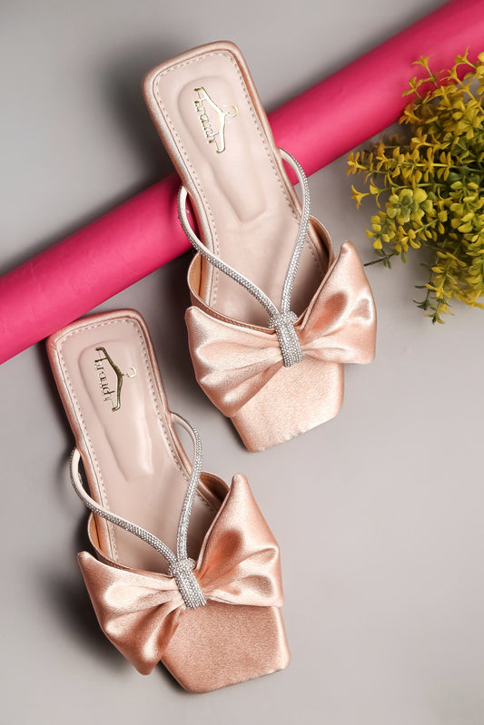 Brauch Women Peach Rhinestone Embellished Bow Flats