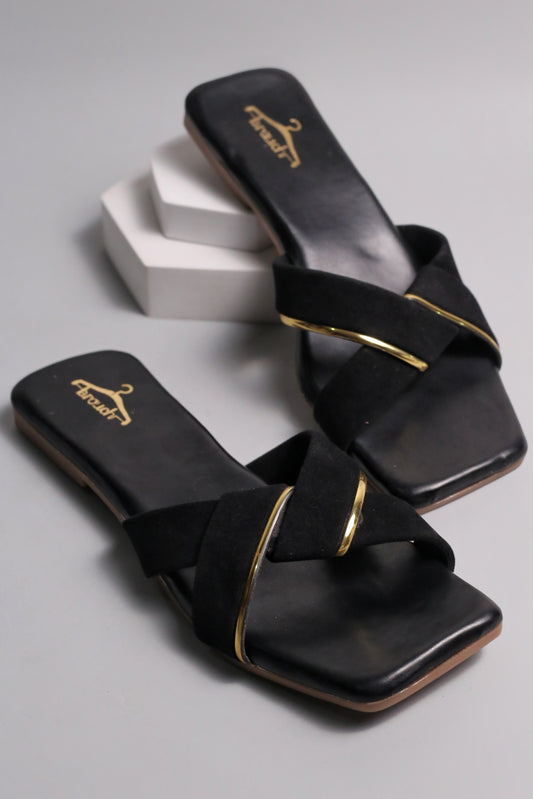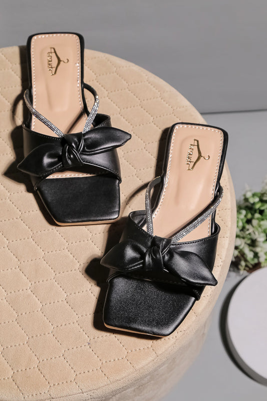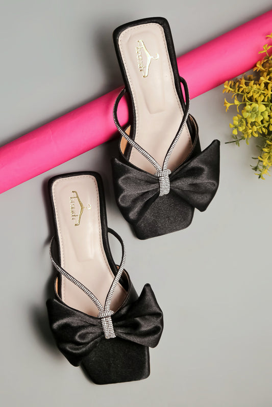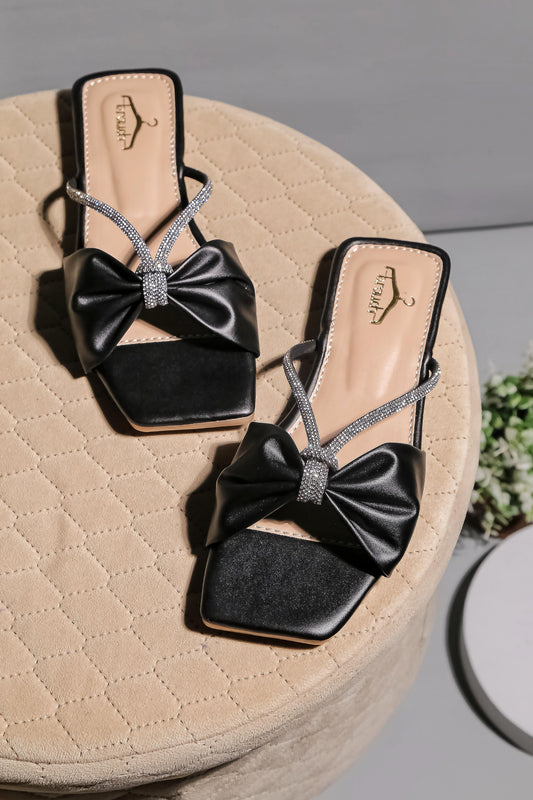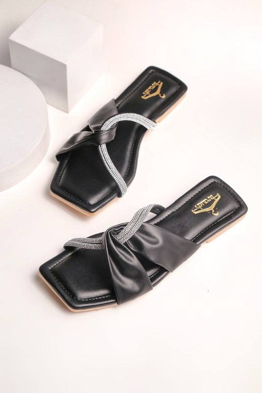 Brauch Women Black Knot Rhinestone Embellished Flats