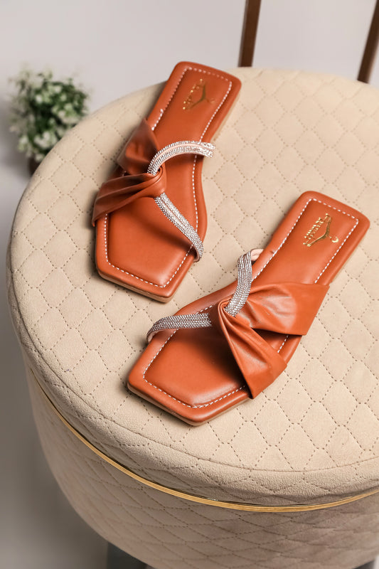 Brauch Women Tan Knot Rhinestone Embellished Flats