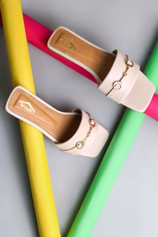 Brauch Women Cream Dual Strap Embellished Buckle Flats