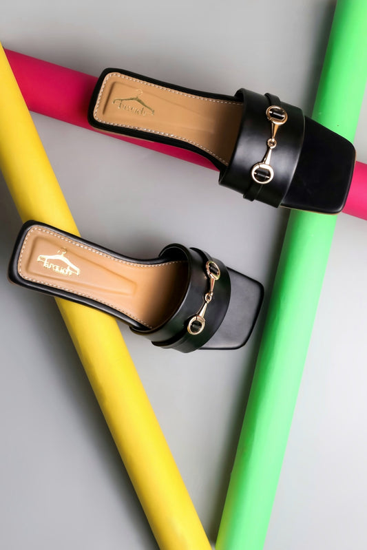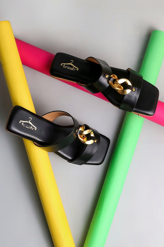 Brauch Women Black Dual Strap Embellished Buckle Flats