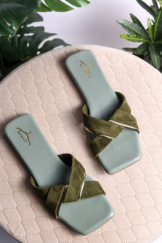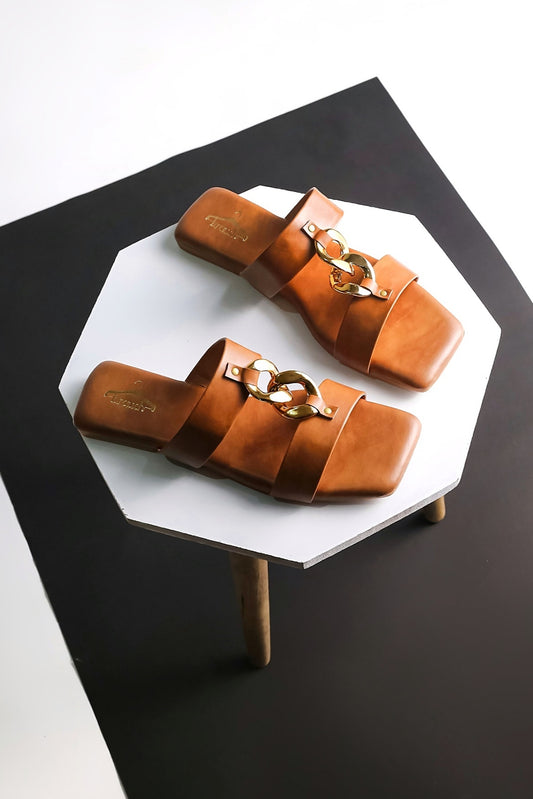 Brauch Women Tan Cross Strap Rhinestone Flats