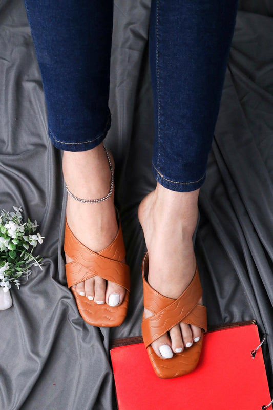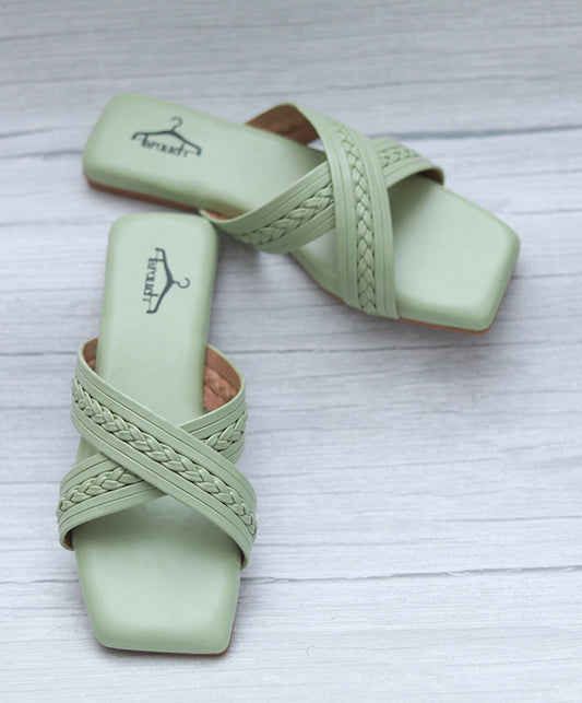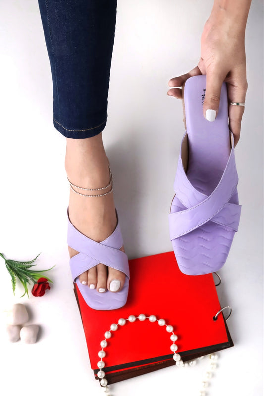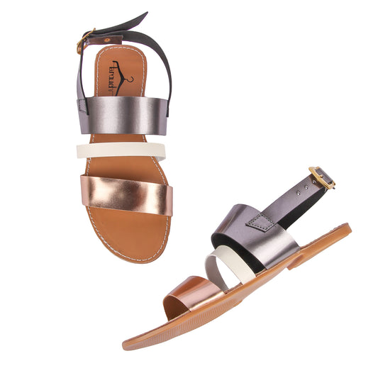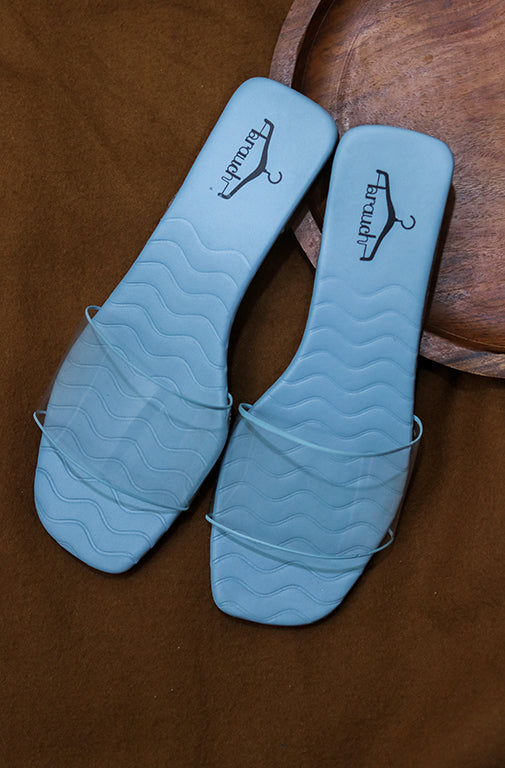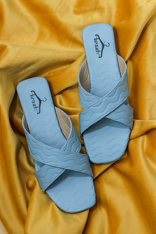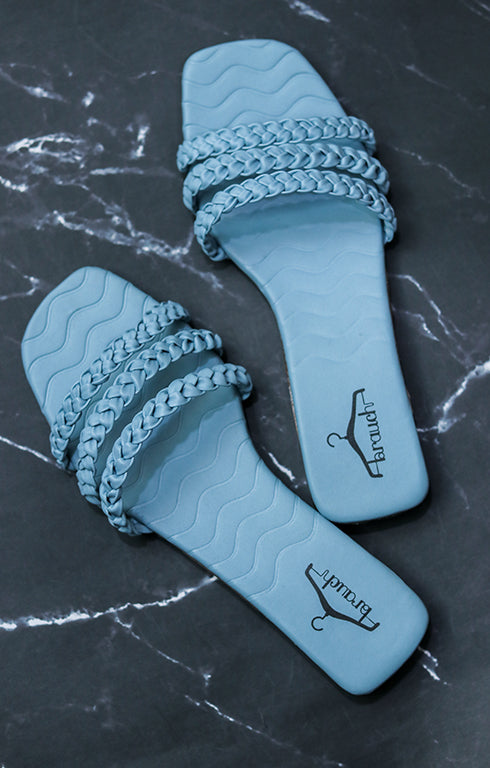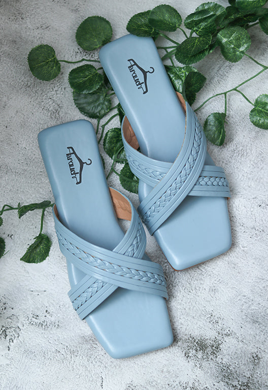 Brauch Sky Blue Buckle Strap Patterned Flats