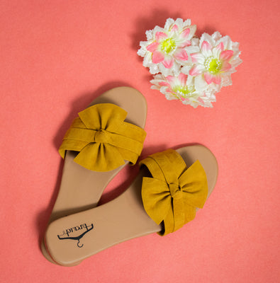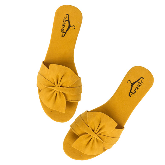Brauch Women's Mustard Suede Bow Flats/Slippers