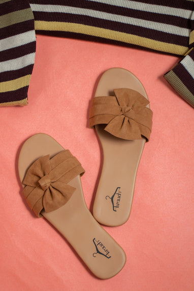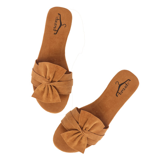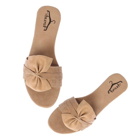 Brauch Women's Tan Suede Bow Flats/Slippers
