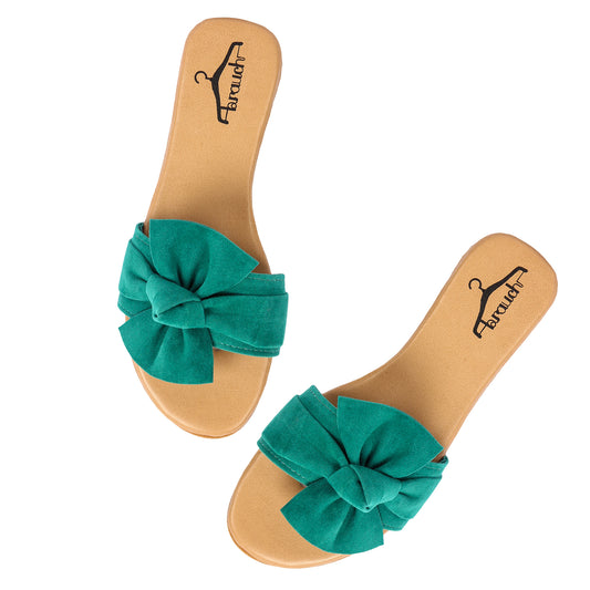 Brauch Women's Bottle Green Suede Bow Flats Slides