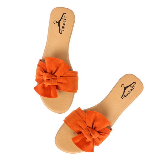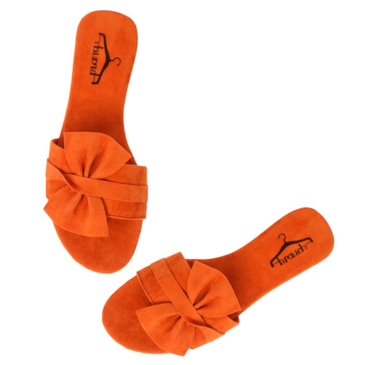 Brauch Women's Orange Suede Bow Flats/Slippers