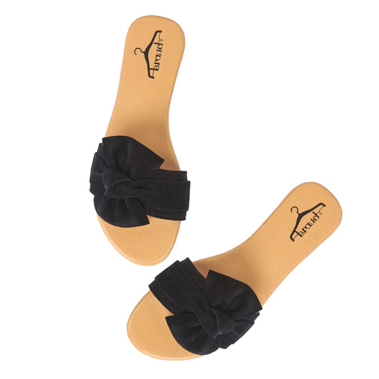 Brauch Women's Royal Brown Suede Bow Flats Slides