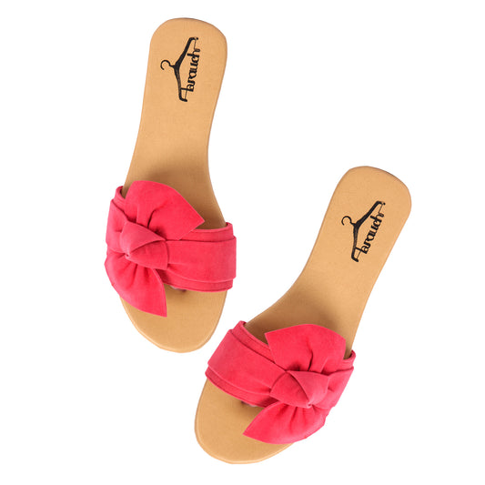 Brauch Women's Pink Suede Bow Flats/Slippers