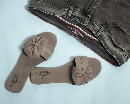 Brauch Women's Grey Suede Bow Flats/Slippers