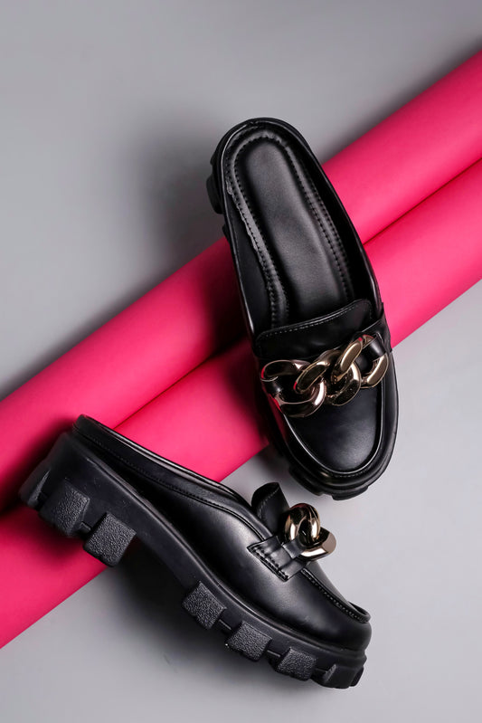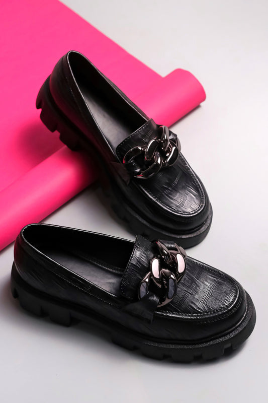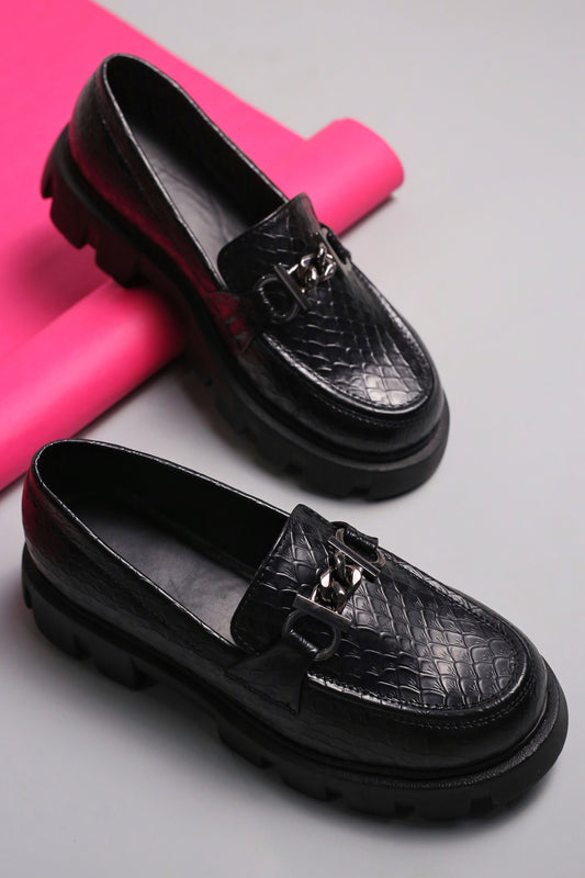 Brauch Black Patterned Buckle Embellished Loafer Shoe