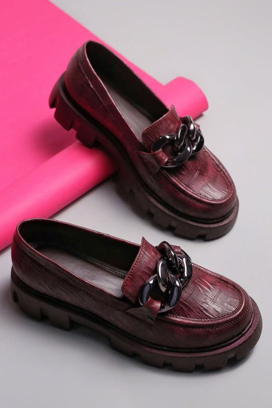 Brauch Maroon Patterned Embellished Loafer Shoe