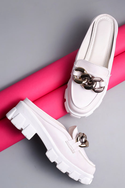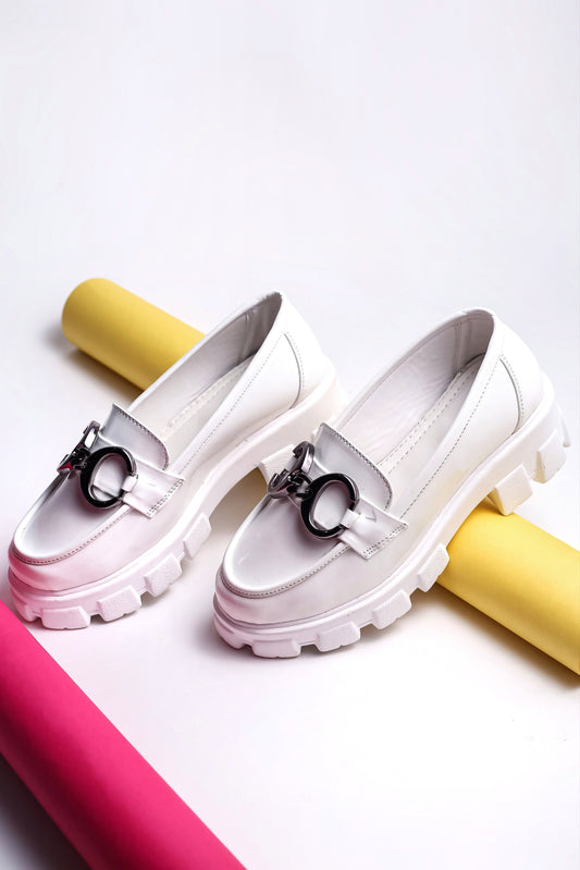 Brauch White Solid Buckle Embellished Loafer Shoe
