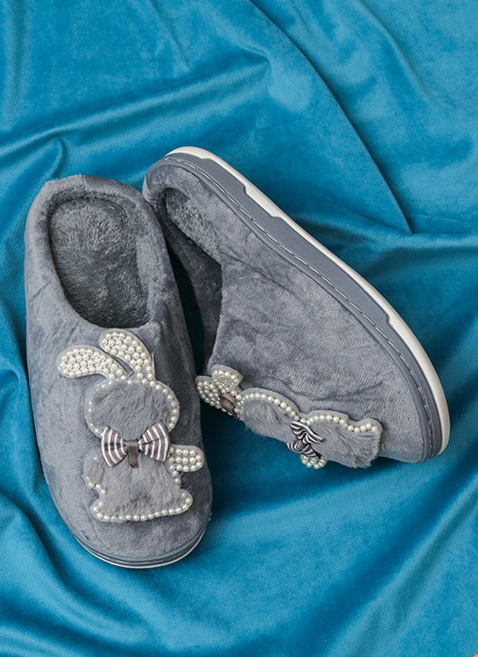 Brauch Women's Grey Pearl Glitter Kitty Winter Slippers