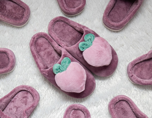 Brauch Women's Purple Fur Heart Apple Winter Slippers