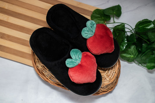 Brauch Women's Black Fur Heart Apple Winter Slippers