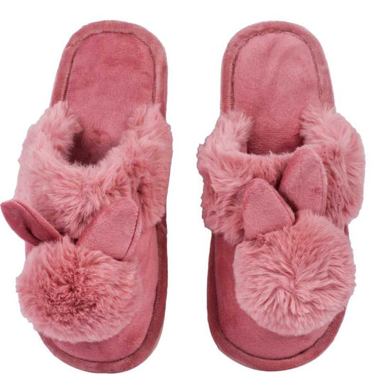 Brauch Women's Pink Furry Rabbit Winter Slippers