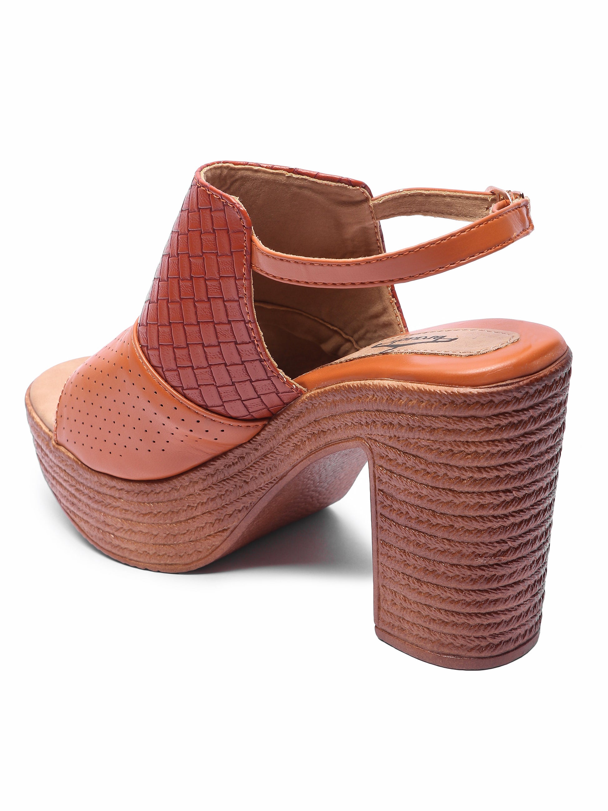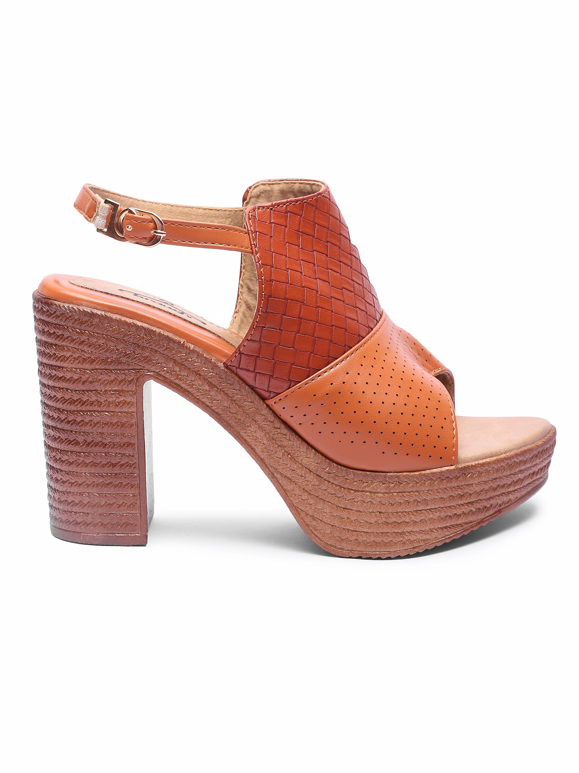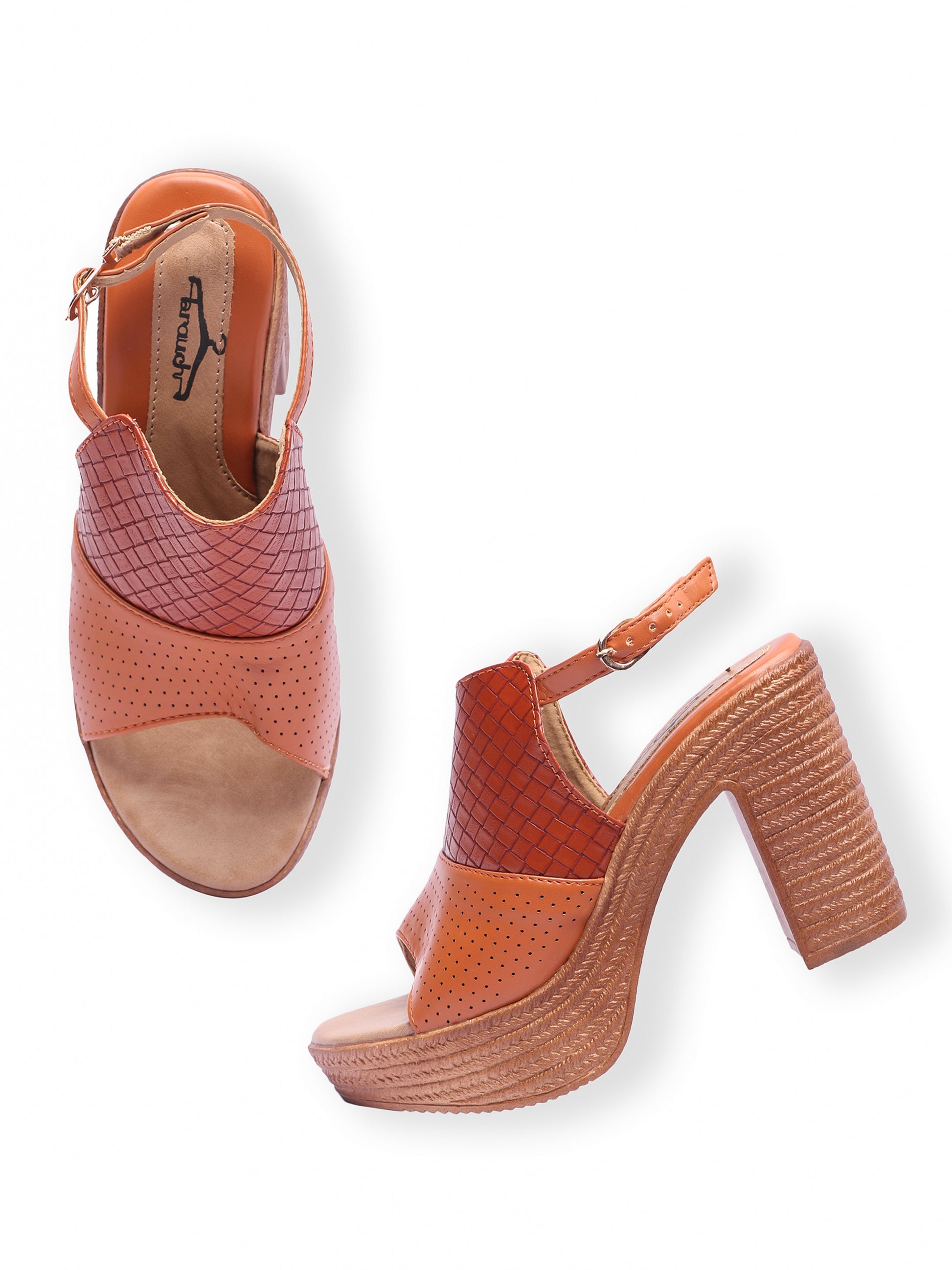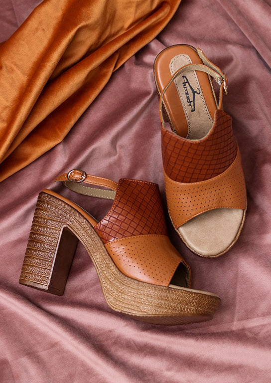 Brauch Tan Ankle Loop High Platform Heel Sandal